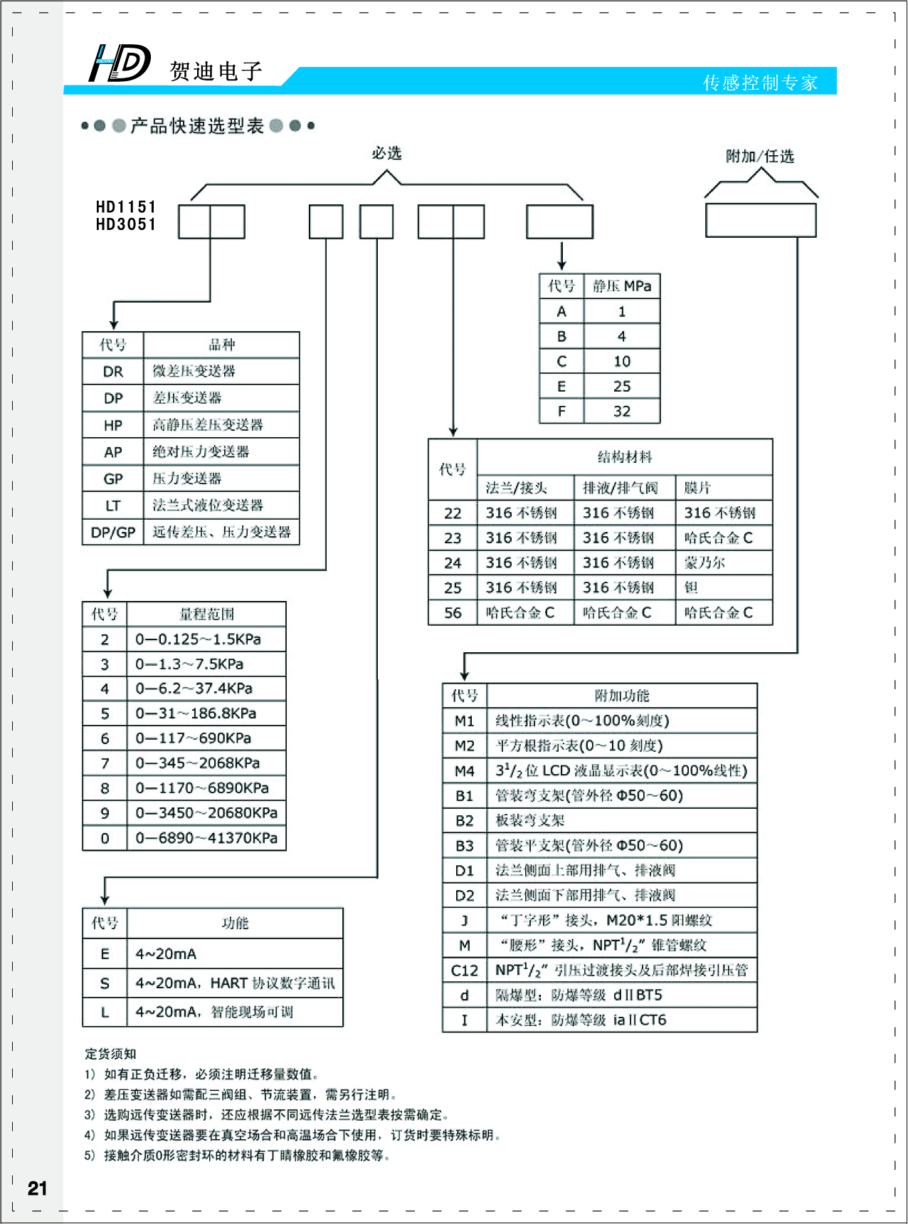 HD1151DP、HD1151HP、HD1151DR壓力/壓差變送器